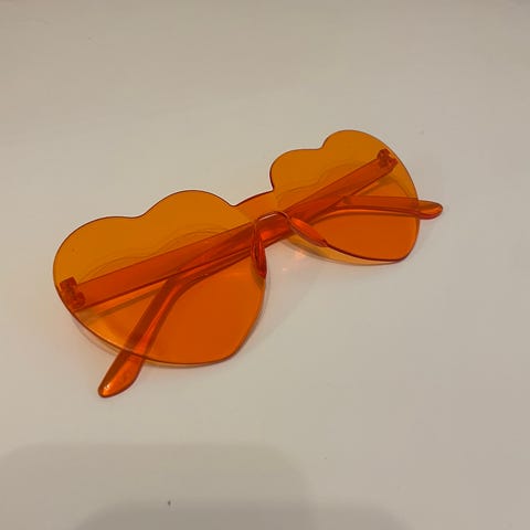 unisex, blå, hjerteformet, 1 stk. sjove udklædningssolbriller, nytårsbriller, polterabend, udklædningsfest, fastelavn, festtilbehør, kalendergaver, vejer 21 gram, aldrig brugt.