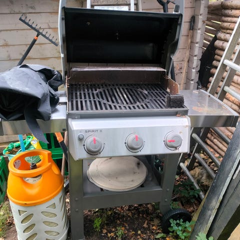 Virkelig velholdt Weber. Der medfølger overtræk, rotisseri, holder til steg/ kylling, tang, pizzasten, drypbakker og rist til brød.