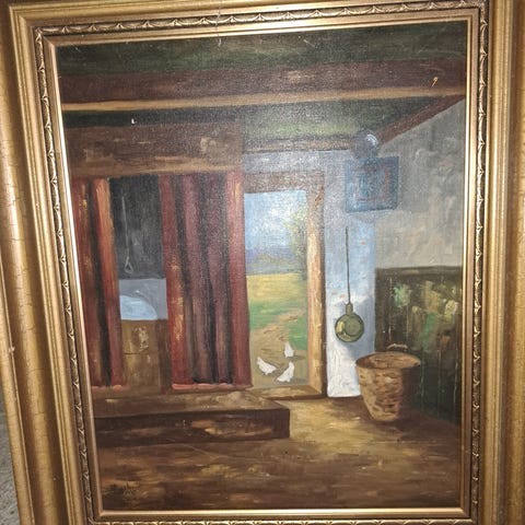 Stort dejligt landmotiv i blå nuancer. Signeret MT 68