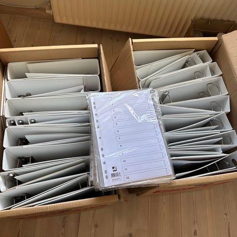 Nye faneblade med 5 skilleark uåbnet i folie. A4 str. med huller