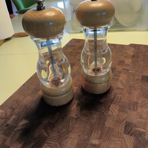 Salt og peberkværne, Cole&Mason, 6 gode og flotte små kværne i klar akryl fra Cole&Mason. De er 10,5.cm høje og kværner godt. Sælges samlet til fast pris + evt. Dao fragt.