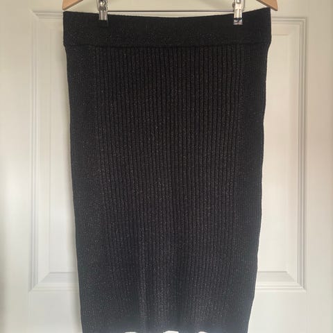 Zizzi nederdel i sort og råhvid mønster med elastik i taljen