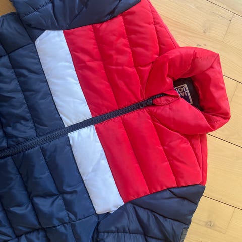 Lækker varm blå overgangsjakke i str. 164. Den er i rigtig fin stand og fra røg- og dyrefrit hjem.