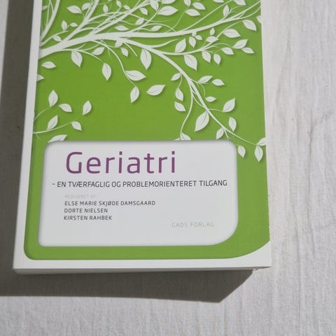 Fagbog. Geriatri - En grundbog i sygepleje, Gitte Rohde (red.). Har lidt tryk på kanterne, men er som ny indeni.