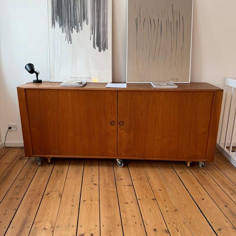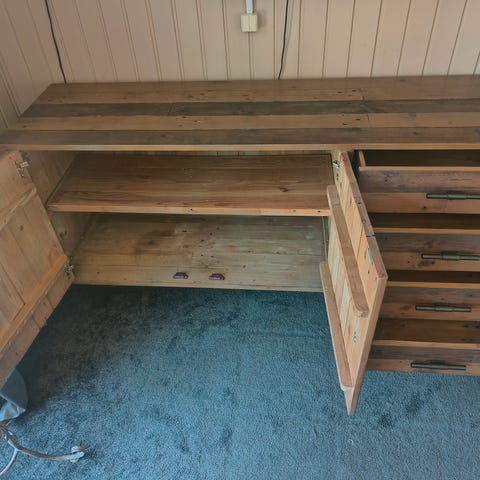 Skænk i massiv genbrugstræ, med 4 skuffer og 2 låger. I skabet er der 1 hylde, som kan tages ud, hvis man ønsker dette. Skænken har fra fabrikkens side, fået en overfladebehandling med voks, så træet ikke er modstandsdygtigt overfor evt. væske, pletter osv.