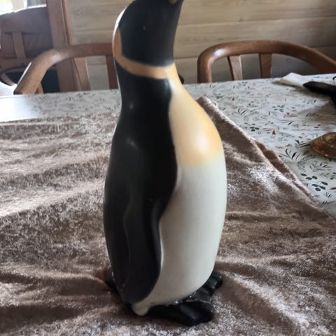 Den er af Plastik ca. 16 cm høj. Den har lidt overflade rids er ellers i pæn stand.