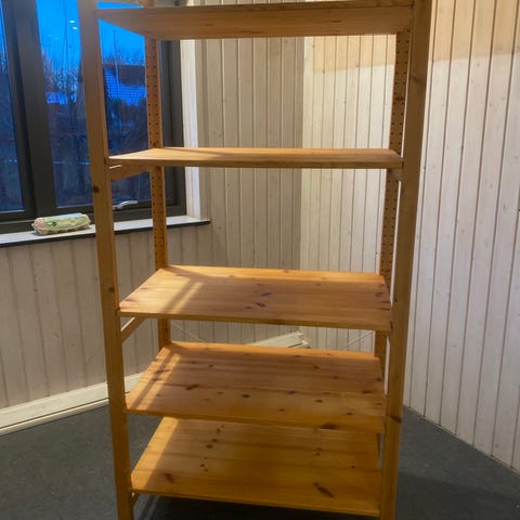 2 nøddetræsreoler sælges. Ikeas gamle model. 350 kr. pr styk.