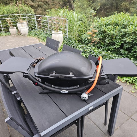 Q-grill med bord og regulator med lynkobling som kan tage primus gaspatroner
