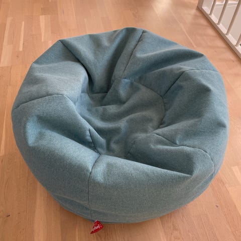 Rigtig fin sækkestol. Den originale “Big Bertha” fra Lounge Pug. Mørkegrå jernbanefløjl. I rigtig god stand.