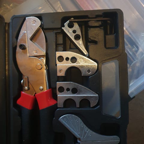 Smart lille sammenfoldeligt multiværktøjssæt. Indeholder alt fra tang til skruetrækkere, saks, knive med mere