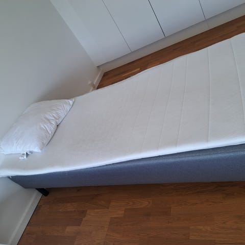a box bed mattress with measurements W90, L200, H27. without the top mattress.