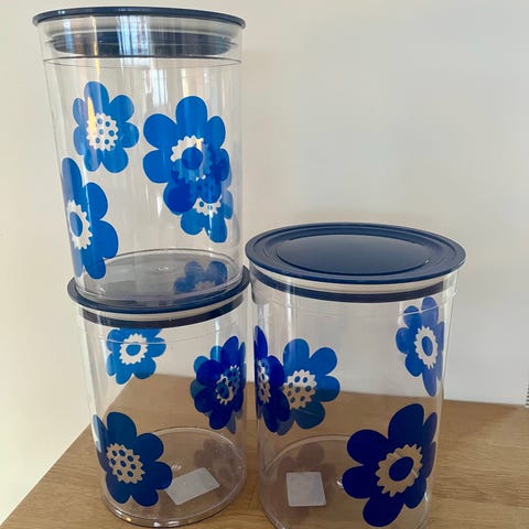 Opbevaringsbeholdere, Sælger disse tre opbevaringsbeholdere til køkkenet. Er i rigtig fin stand uden revner eller andet.