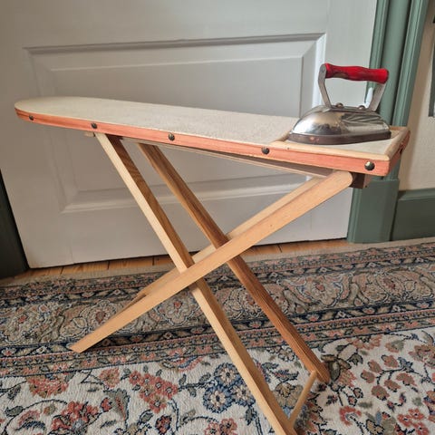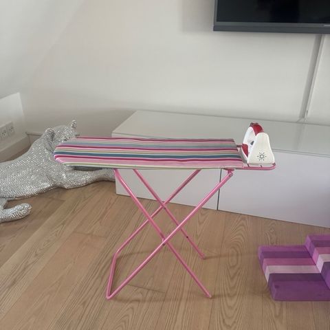 Andet legetøj, Strygebræt inkl. strygejern, Drewart, Strygebræt inkl. strygejern. Begge af træ. Brættet har et betræk, som kan vaskes. Det kan nemt klappes sammen og har to justeringshøjder. Sendes ikke. Købt i Skovalfen. Se mere info her: