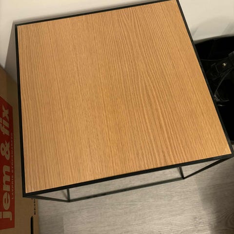 Sortbejdset Ask / Kobberbordplader. Vendbar.