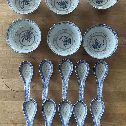 Seks styks flade skåle stadigvæk med lidt dybde i