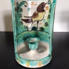 Keramik, 2-armet stage, grøn/brunmeleret, østtysk, Strehla, mrkt.: 501, 11,4 cm høj / 20,2 cm lang / huller 3 cm i diameter.
