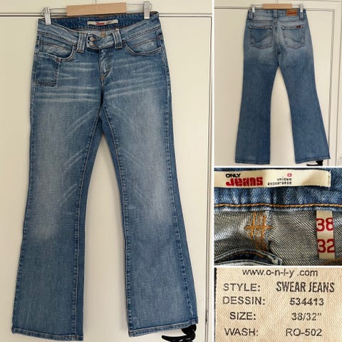 Mørkeblå jeans fra Only med bootcut. Brugt i en kort periode, men er i flot stand og som nye. Se str på foto.