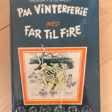 Pæn kartonindbundet bog fra Martins Forlag, 1957. Ryggen mangler, men resten af bogen er fin og hænger sammen :). Tegninger af Engholm.
