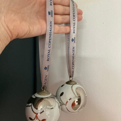 3 stk Royal Copenhagen julekugler mega musel nr. 2 sælges samlet for 950,- En af dem er sølv/ hvid og de 2 andre er hvid/ blå. De er 1. sortering og stort set ubrugte og opbevaret i originale æsker som er i god stand.