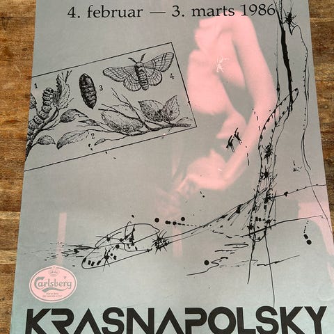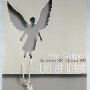 En af tre oversize Jyllands Posten reklameplakater som vi har til salg. De øvrige er af Per Kirkeby og Bentemarie Kjeldbæk. Disse har været opbevaret rullet sammen siden omkring 1995.
