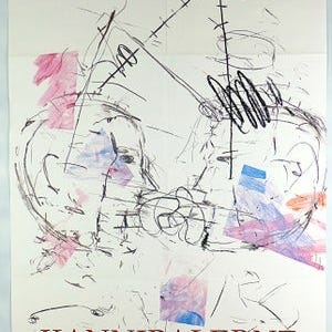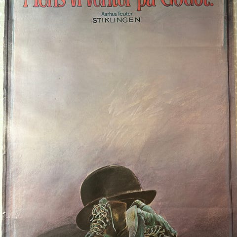 En teaterplakat af Kai (Kaj) Flummer (1925-2018) til Samuel Beckets 'Mens vi venter på Godot'. Aarhus Teater Stiklingen, 1981.