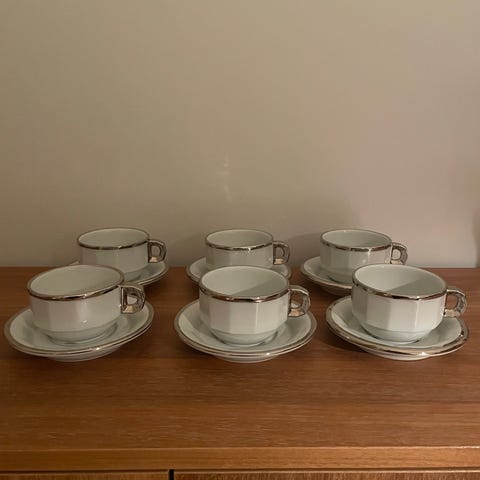 Store Bistro kopper og underkopper. Ingen slår og har været ubrugt længe.
