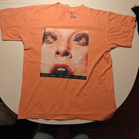 Cautious Clay tour‑shirt, str. L – officiel merch fra