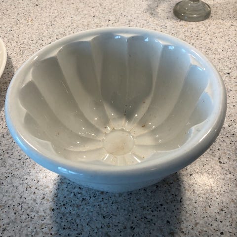 Meget fin buddingform med mønster i bunden. Måler 17 cm på langs.