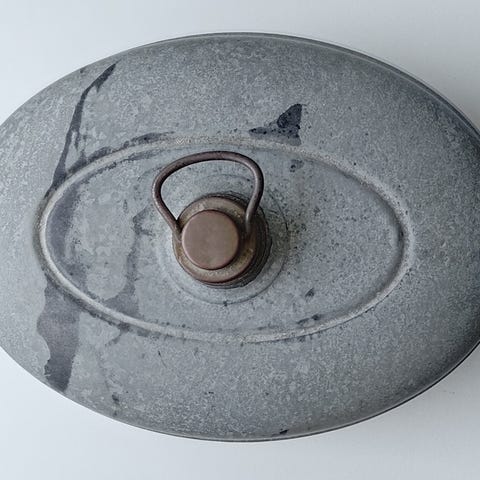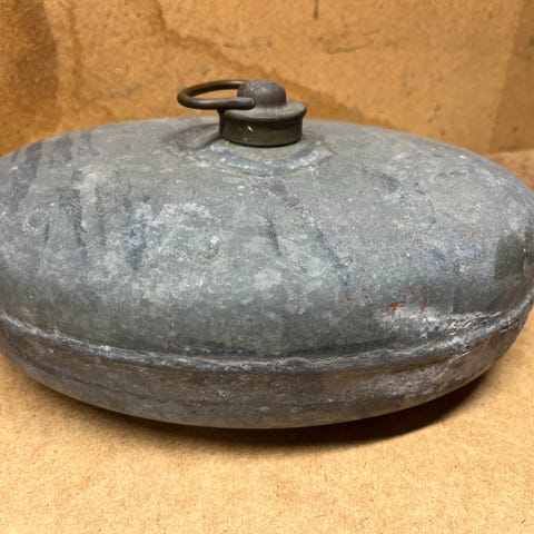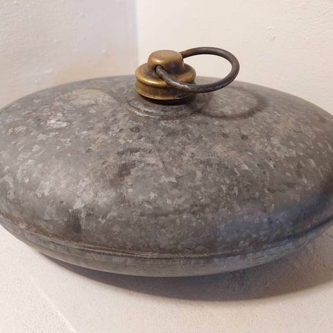 Fin gammel/Retro varmedunk, som i gamle dage stod på kaminen og blev varm, inden den blev lagt i sengen, så den var varm at komme i 🙂 da den jo er gammel (måske 150 år) har tidens tand jo sat sig på den.
