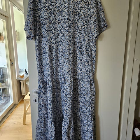 Fin og afslappet sommerkjole i smukke farver, der falder flot. Jeg bruger normalt XL, men passer denne fint. Kan vaskes i vaskemaskinen og fremstår helt ny. Mærke-MbyM