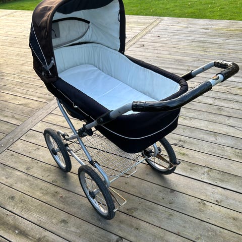 Unik retro Brio / Silvercross barnevogn med stålksse fra 1982.