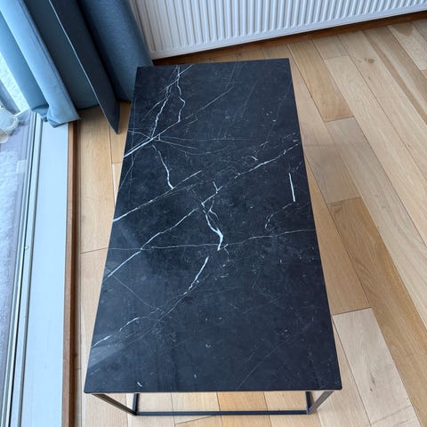 Sofabord i glas og marmor fra Ilva sælges. Der er brugsspor ift ridser på glas pladen også er der en vand / kalk plet på marmor pladen som jeg har forsøgt at fange på det sidste billede. Kom gerne med bud. Begge plader kan løftes op ved afhentning. Skal hentes fra Østerbro, på stueetagen.