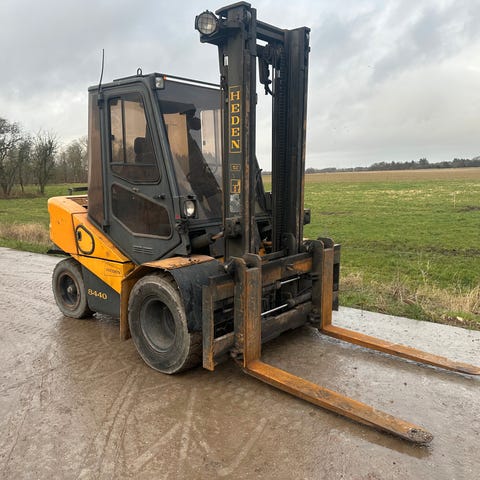 Pladstruck, heden diesel, diesel truck, terrænkørende, terrængående truck, truck på plads, truck til grus, stor truck, langegafler, bredslæde, stor hjul, truck med kabine