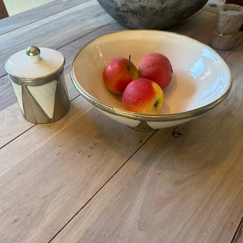 Fin gl. glasskål med forsølvet hank og fine slibninger samt fin oval glas lågkrukke. Sælges samlet til 100kr