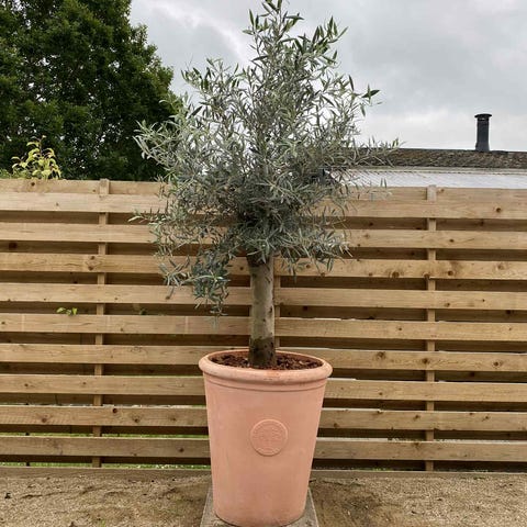 Olea europaea er den mest brugte sort i Danmark. Træerne er lidt over 2 m høje med potte og krone. Potten har en diameter på 45 cm. Træerne har en tyk og lodret stamme og de er meget symmetriske i deres udseende.