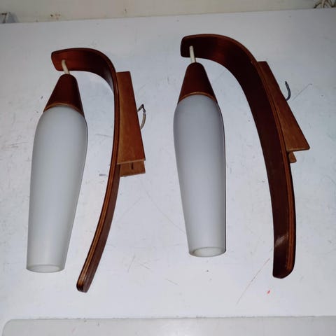Væglampe 3 stk - tilskrevet Bent Karlby - teak & opalin glas - Midcentury 1960