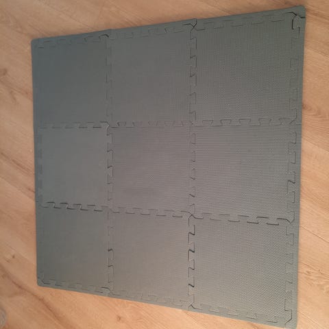 Skumgulv i blå nuancer med tal og dyr. Kan anvendes enten firkantet eller rundt.