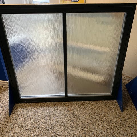 Vinduerne, der måler 97,5 x 94 cm, er fra Hvidbjerg og ligner nogen, der lige har forladt fabrikken. Karmdybde 130 mm. En rude i hver side og begge kan åbnes. De har paskvil åbning (alu håndtag i stedet for hasper) og er udstyret med vinduesbremse. Ruderne er 3 lags og er 48 mm tykke.