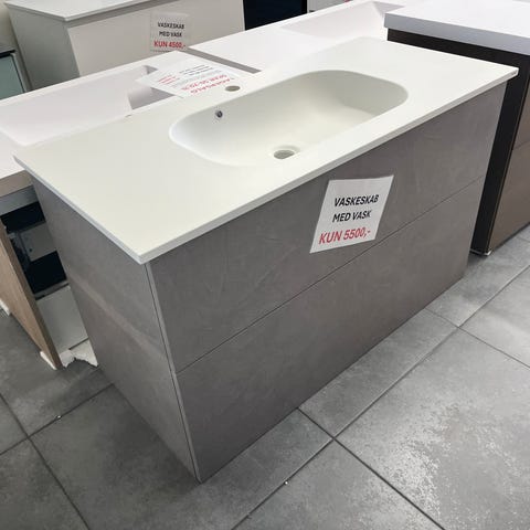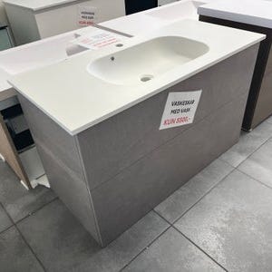 100 cm KVIK badmiljø med hvide fronter og marmorline vask