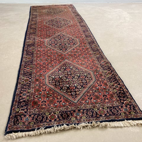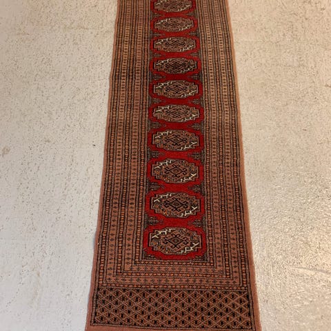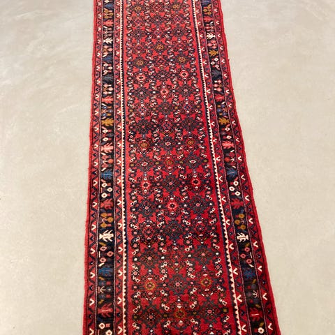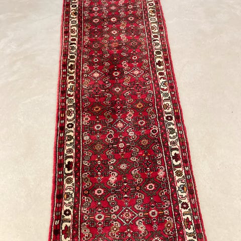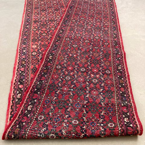 Flot iransk håndvævet løber med frynse kanter i røde nuancer. Fin stand for alderen.