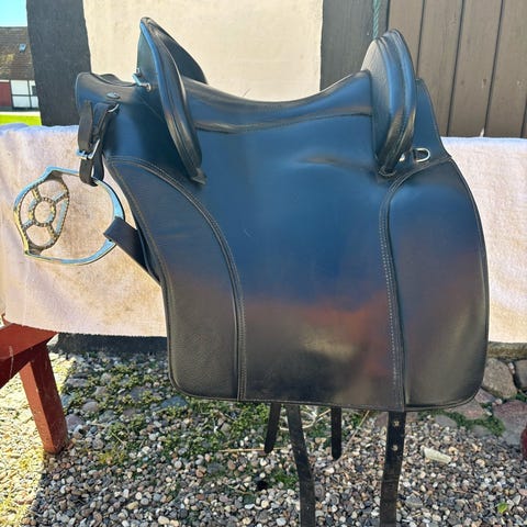 Super flot og velholdt dressursadel. Har mindre brugsspor, men er uden betydning .
