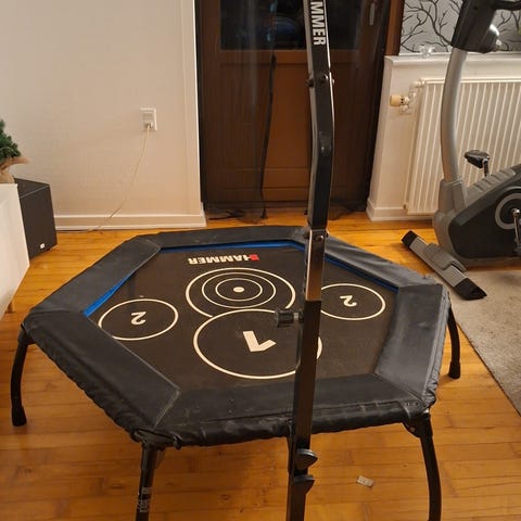 Sælger denne trampolin fordi det ikke lige er mig med sådan en trampolin er selv hent den er heller ikke bare lige at pakke ind og den er tung så det bedste det er at man selv henter den hvis man har mulighed for det