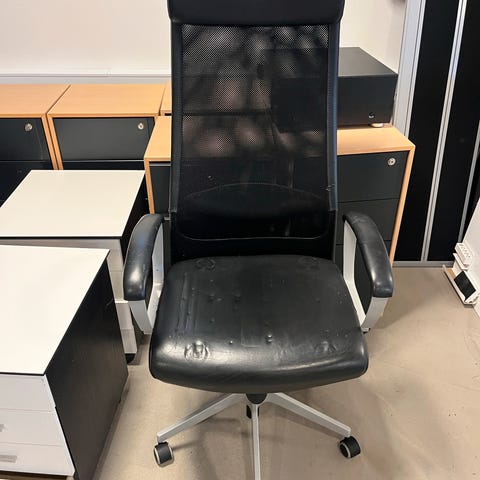 Ergonomisk kontorstol med høj ryg og hjul – brugt men funktionel