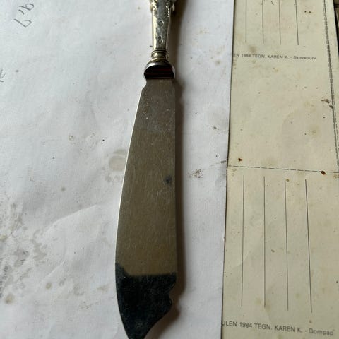 Smuk, ældre lagkage kniv med skæfte i sølv, se stempel på foto