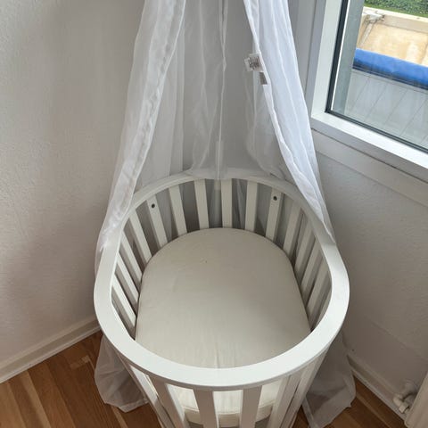 Sengen, der vokser med barnet. Minder om Stokke, men andet brand. Vi faldt for de bredere lameller og den flotte buede runding på dette produkt.