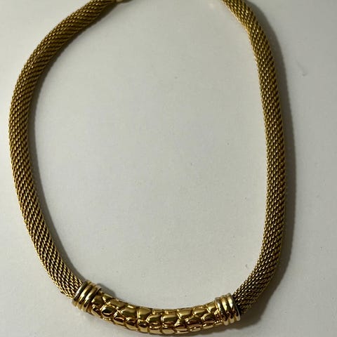 Balenciaga forgyldt vintage halskæde 44 cm. Med røde emalje drops.