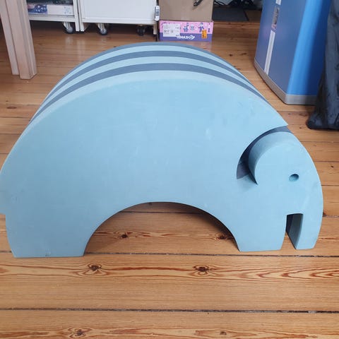Far til Fire elefanten Bodil gyngeelefant, stor model, som barnet kan sidde på - kan både gynge og køre. Hjulene kan slås op og ned.