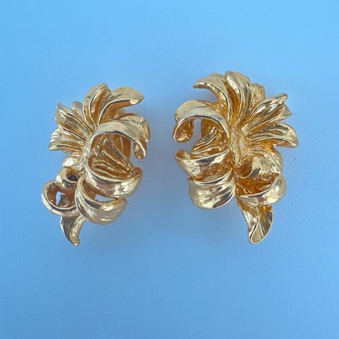 Mat forgyldte Kenzo vintage øreclips hængere 6 cm. med iris 3 cm.