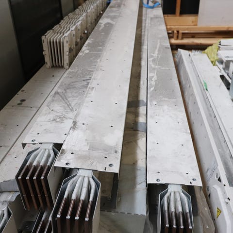 Canalis KTA 1000 distributionsskinne 400cm med aluminiums ledere. KT 4x1000AL FEEDER Lenght4m. 3L+N+PE IP55 Mål: Skinnerne fås i flere længder, bl.a. L4000xB110xH1350mm Vælg længde under varianter. Se billeder for flere detaljer og stand. Skinnerne har været monteret, men aldrig blevet ibrugtaget. Alu. Beskyttelsesplade er stadig monteret på flere af enhederne. Ridser, skrammer, og støv fra transport og lager kan forekomme. Skinnerne kan samles med CANALIS KT Forbindelsesblok, https://kingogenbrug.biz/vare/canalis-kta-1000-ya4-forbindelsesblok/ Skinnerne kan vinkles med CANALIS KT Vinkel, https://kingogenbrug.biz/vare/canalis-kt-90-vinkel-kta1000lc4d/