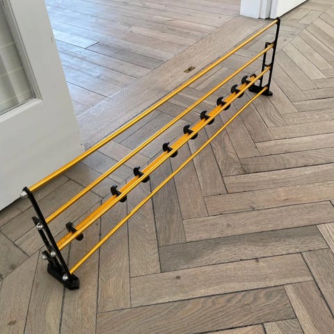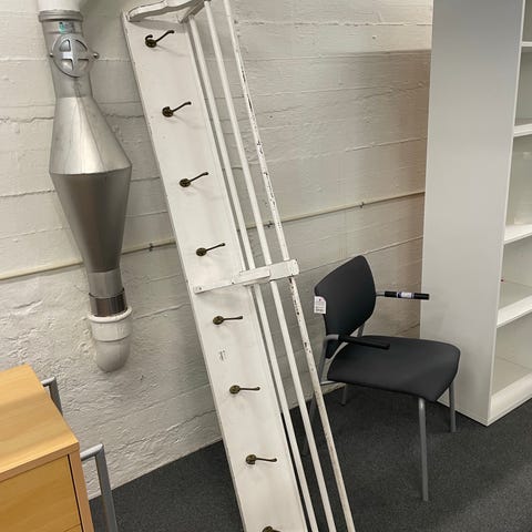 Væghængt omklædnings hattehylde. Materiale: Galvaniseret stål i Ø35 mm. B:120 cm x H:35 cm x D: 37 cm. Se evt. lignende artikel her: https://kingogenbrug.biz/vare/1stk-balancebom-433cm-massiv-lakeret-trae/ https://partisalg.dk/produkt/spejl-silver-clear-876-x-716-mm-pris-kr-29-stk/ https://kingogenbrug.biz/vare/vaeghaengt-omklaedningsbaenk-lakeret-trae/ https://kingogenbrug.biz/vare/vaeghaengt-omklaednings-knageraekke/